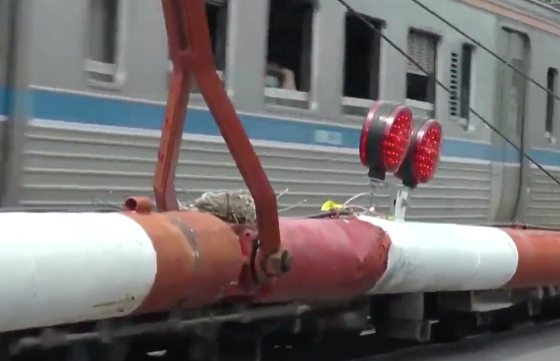 ผู้สื่อข่าวจึงลงพื้นที่ไปดูพบว่ายังมีแม่นกอยู่บนรัง แต่ไม่รู้ว่าในรังจะมีไข่เหมือนในเฟซบุ๊กหรือไม่ ต้องรอจนกว่าขบวนรถไฟจะเข้าหรือออก จึงจะมีการกั้นเพื่อไม่ให้รถผ่านเพื่อความปลอดภัย ขณะที่ไม้กั้นกำลังเลื่อนลงมา กระทั่งระดับไม้กั้นวางพื้น จึงเห็นลูกนกที่โตเต็มวัยนอนรวมกันอยู่ 3 ตัวท่าทางไม่ตกใจหรือตื่นตระหนกแม้แต่น้อย แม้ในช่วงขณะที่รถไฟวิ่งผ่านจนเจ้าหน้าที่การรถไฟยกไม้กั้นขึ้นตามเดิม ลูกนกก็ยังคงนอนเป็นปกติ ก็ไม่รู้ว่าเพราะแม่นก พ่อนกให้ลูกน้อยได้หาประสบการณ์ตื่นเต้นเร้าใจหรืออย่างไรถึงได้เจาะจงมาทำรังบนไม้กั้นทางรถไฟ