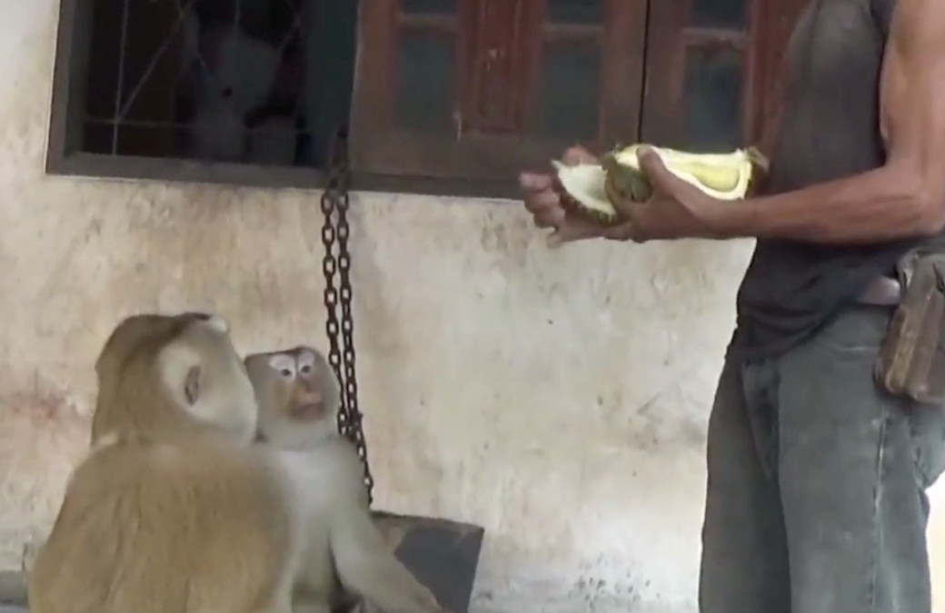 ไปดูคนรักลิงมากขนาดไหน ที่บ้านเช่าของนายโส (ไม่มีนามสกุล) ชาวเมียนมาที่สร้างครอบครัวอยู่กับชาวจ.ตรัง และอาศัยอยู่นานกว่า 20 ปีแล้ว (มีใบอนุญาตถูกต้อง) ยอมควักเงินกว่า 300 บาท ซื้อทุเรียนหมอนทองมาป้อนให้ลิงหางยาวตัวผู้ ที่เลี้ยงไว้จำนวน 2 ตัวคือ เจ้าเกี๊ยะ อายุ 5 ปีและเจ้าน้อยอายุ 8 ปี ได้กินกันอย่างเอร็ดอร่อย แม้ว่าทุเรียนหมอนทองต้นฤดูจะยังมีราคาแพงถึงกิโลกรัมละ 130-140 บาทและอยู่ในช่วงการแพร่ระบาดของไวรัสโควิด-19 ทำให้ทั้งลิงทั้งคนตกงานก็ตาม