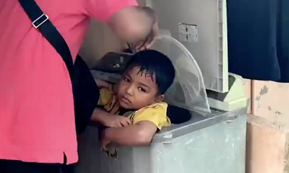 กระบี่ 1 มิ.ย.- กู้ภัยฯ ช่วยเหลือเด็กน้อยวัย 5 ขวบ หลังเล่นซ่อนเเอบกับน้องสาวจนหัวเข่าติดเครื่องซักผ้าหน้าจ๋อยรอความช่วยเหลือ สุดท้ายช่วยเหลือออกมาได้สำเร็จ