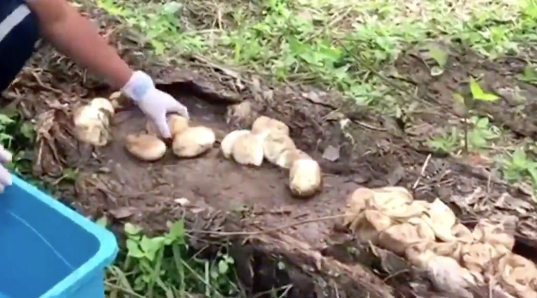 กระบี่ 2 มิ.ย.- ชาวบ้านไปหาเห็ดในสวนปาล์ม ดีใจคิดว่าเจอเห็ดปลวกกลับต้องตกใจ จากเห็ดกลายเป็นไข่งู จำนวนมากถึง 40 ฟอง แถมยังเจอแม่งูความยาวกว่า 5 เมตร กำลังนอนกกไข่ ไม่ยอมไปไหน