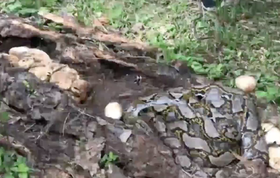 เดือดร้อนเจ้าหน้าที่กู้ภัยต้องเข้ามาช่วยจับงูที่ชาวบ้านไปเจอกำลังนอนกกไข่อยู่ในโพลงซากต้นปาล์ม พื้นที่ ต.อ่าวลึกเหนือ อ.อ่าวลึก จ.กระบี่ ซึ่งไม่ยอมเลื้อยไปไหน แม้เจ้าหน้าที่จะพยายามเอาไม้เขี่ยให้ออกมา แต่แม่งูก็ยังนอนขดนิ่งกกไข่ไว้ไม่ปล่อย เจ้าหน้าที่ได้รื้อต้นปาล์มออก ก่อนใช้ไม้บ่วงคล้องคอแม่งู และลากตัวออกมา วัดความยาวได้ 5 เมตร หนักประมาณ 8-10 กิโลกรัม เจ้าหน้าที่จึงนำใส่กระสอบเอาไปปล่อยในธรรมชาติ จากนั้นได้ตรวจสอบภายในโพรงต้นปาล์ม พบไข่งูจำนวนมากถึง 41 ฟอง ยังไม่เเตก 20 ฟอง เเตกไปแล้ว 21 ฟอง และยังเจอลูกงูอีก 7 ตัว จึงเก็บใส่กระสอบและเอาไปปล่อยพร้อมกับแม่งู
