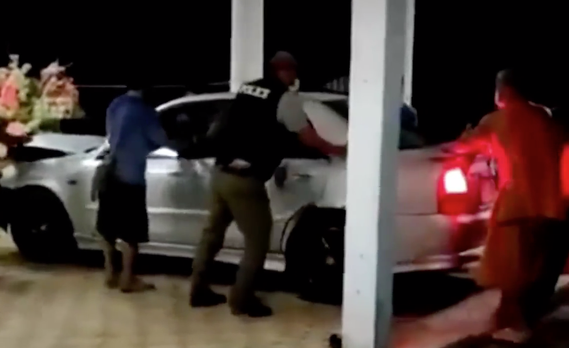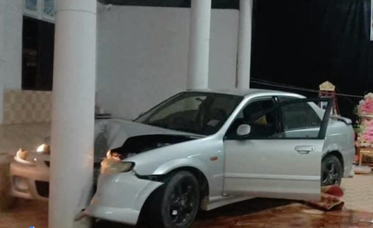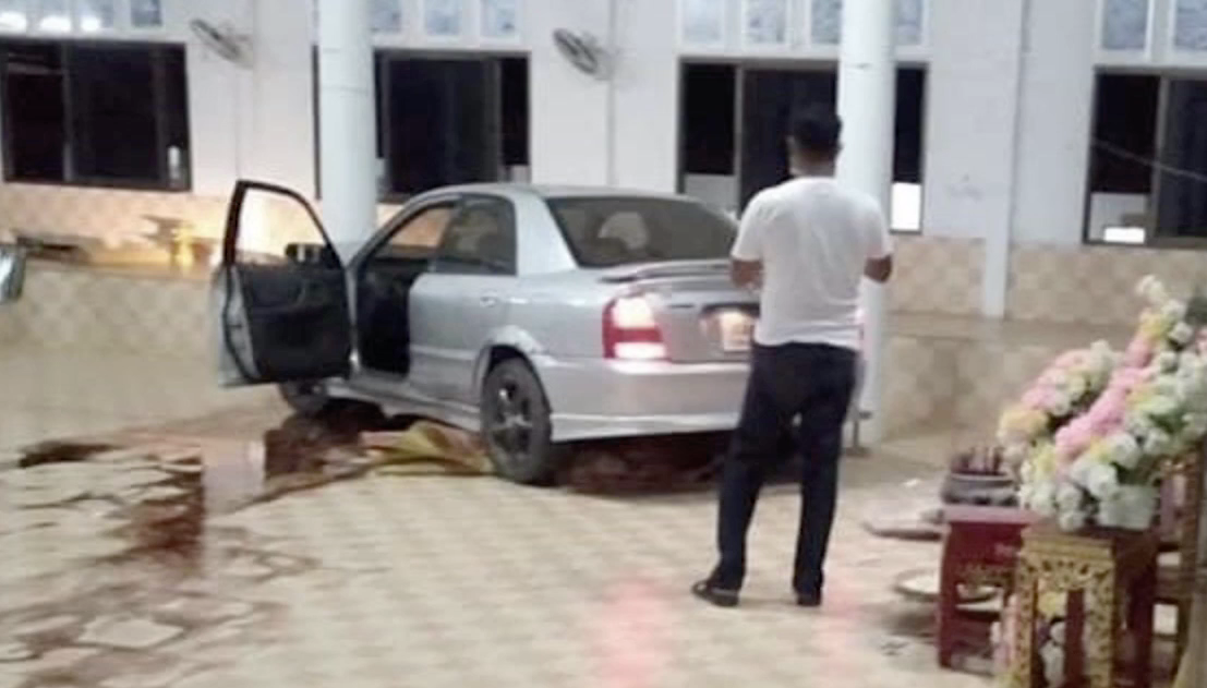 โดยคืนดังกล่าว เวลา 20.30 น. หลังพระสงฆ์สวดอภิธรรมเสร็จ ขณะที่ญาติๆ และแขกที่มาร่วมงาน 10 คน กำลังกลับ จู่ๆ มีรถเก๋งสีบรอนซ์เงิน ทะเบียน 7712 รถของแขกที่มาร่วมงาน พุ่งตรงเข้าไปในศาลาด้านหน้าที่ตั้งศพ ชนเข้ากับเสาของศาลาอย่างจัง ทำให้ด้านหน้ารถพังเป็นรอยยุบเข้าไป ท่ามกลางความตกใจของทุกคนที่อยู่ตรงนั้น ซึ่งด้านคนขับรถบอกว่าใส่เกียร์ผิด แทนที่จะใส่เกียร์ถอยหลัง กลับใส่เกียร์เดินหน้าจนรถพุ่งไปข้างหน้าอย่างรวดเร็ว และไปหยุดที่เสากลางศาลา หลังจากนั้นผู้ที่อยู่ในงานรวมทั้งพระสงฆ์ ได้ช่วยกันทั้งดัน ทั้งยก รถคันดังกล่าวออกมาไว้นอกศาลา