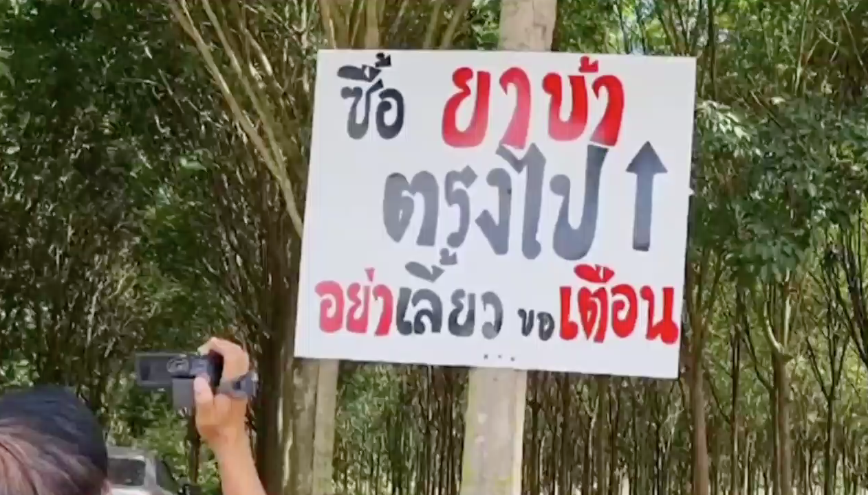ขณะที่นายเอ นามสมมติ ผู้ที่เขียนป้ายประชดคนขาย-คนเสพยาบ้า เปิดเผยว่า สาเหตุที่ทำลงไป เพราะกลุ่มผู้ค้าและผู้เสพยาบ้าได้ใช้พื้นที่สวนยางพาราของตนเป็นทางผ่านซื้อขายกันอย่างโจ่งแจ้ง เคยพูดเตือนไปหลายครั้งว่าเป็นพื้นที่ส่วนบุคคล แต่ก็ยังบุกรุกเข้ามาซื้อขายยาบ้ากันในยามค่ำคืน หมาเห่าส่งเสียงดังไม่ได้หลับไม่ได้นอน มิหนำซ้ำยังมีการยิงปืนข่มขู่ด้วย ทำให้ครอบครัวตนเองรู้สึกถึงความไม่ปลอดภัย และสร้างความหวาดกลัวให้เป็นอย่างมาก จึงต้องการติดป้ายบอกให้ไปไกลๆ ไปค้าไปเสพกันที่อื่น อย่ามาใช้ที่ดินตนเองทำเรื่องไม่ดีเช่นนี้ วันนี้รู้สึกอุ่นใจมากขึ้นที่มีเจ้าหน้าที่ตำรวจเข้ามาพูดคุยและรับฟังปัญหาที่เกิดขึ้น และรับปากว่าจะดำเนินการขั้นเด็ดขาดกับกลุ่มผู้ค้าผู้เสพยาบ้าดังกล่าว ส่วนตนก็ได้แจ้งความดำเนินคดีเอาไว้แล้ว.-สำนักข่าวไทย