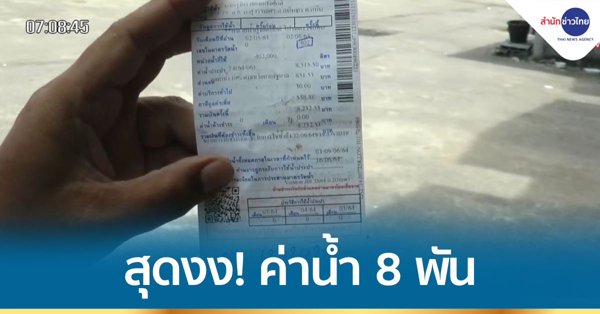 ปราจีนบุรี 7 มิ.ย. – สองสามีภรรยาช็อก เจอบิลค่าน้ำประปามหาโหด 8,000 กว่าบาท ทั้งที่ก่อนหน้าเสียแค่ 32 บาท สอบถามการประปาส่วนภูมิภาคกบินทร์บุรี จ.ปราจีนบุรี ได้รับคำตอบว่าเจ้าของบ้านต้องรับผิดชอบเอง