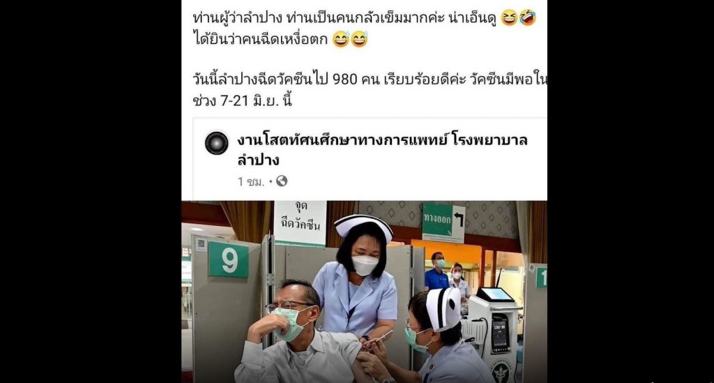ผู้ว่าฯ ลำปางฉีดวัคซีนโควิดเข็มแรก ทำคนฉีดเหงื่อตก