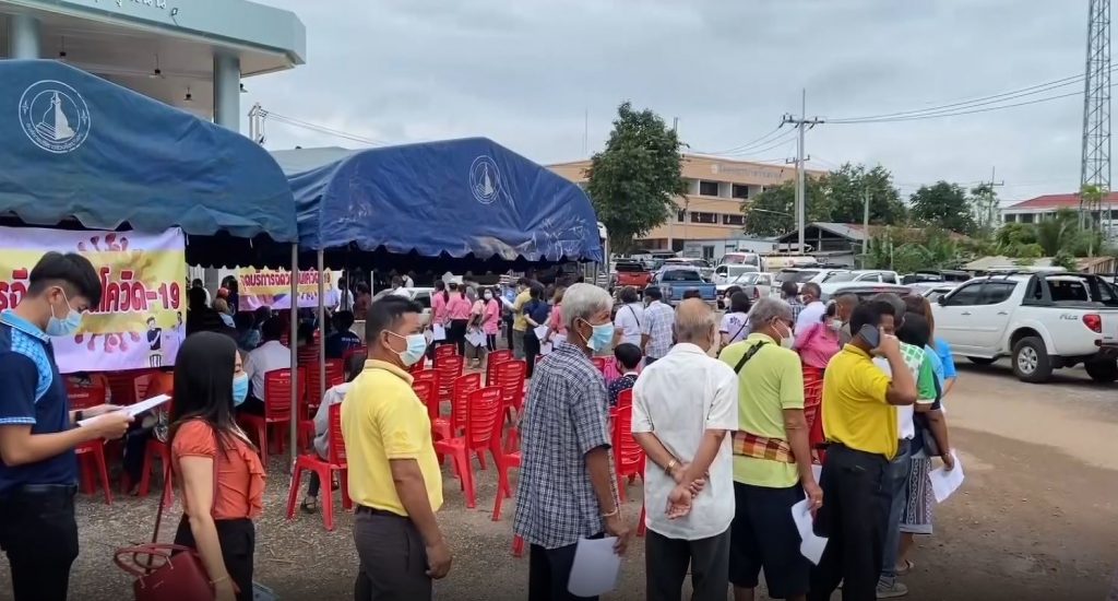 ที่โรงพยาบาลวังสะพุง ประชาชน ทั้งกลุ่มผู้สูงอายุ และ 7 โรค ต่างพากันมาลงทะเบียนรับฉีดวัคซีน โดยวันนี้อำเภอวังสะพุง ได้รับวัคซีน 900 โดส ฉีดให้กลุ่มผู้สูงอายุ และ 7 โรคเรื้อรัง รวมถึงกลุ่มผู้ค้าลอตเตอรี่ ที่ถูกคัดเลือกมาฉีดอีก 30 คน เนื่องจากเป็นกลุ่มเสี่ยง ที่เดินขายในพื้นที่ที่มีการระบาด โดยกำนันตำบลศรีสงคราม อำเภอวังสะพุง เรียกร้อง ขอให้รัฐจัดสรรวัคซีนให้กับกลุ่มผู้ค้าลอตเตอรี่ ที่เดินทางไปขายตามต่างจังหวัด เพราะเป็นอาชีพหลักของคนวังสะพุง