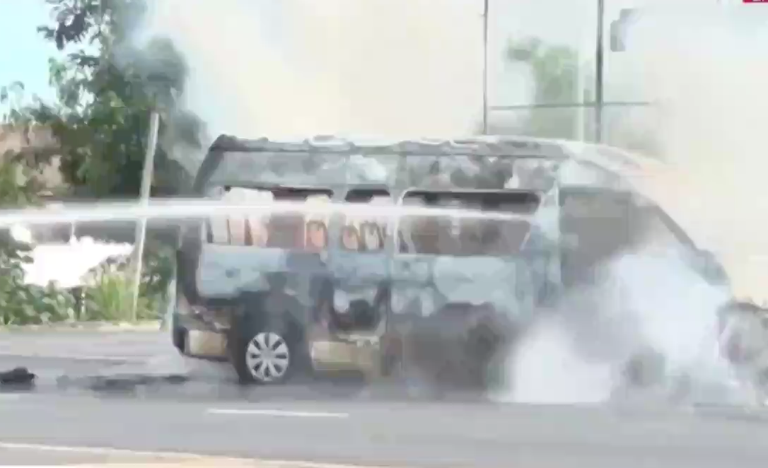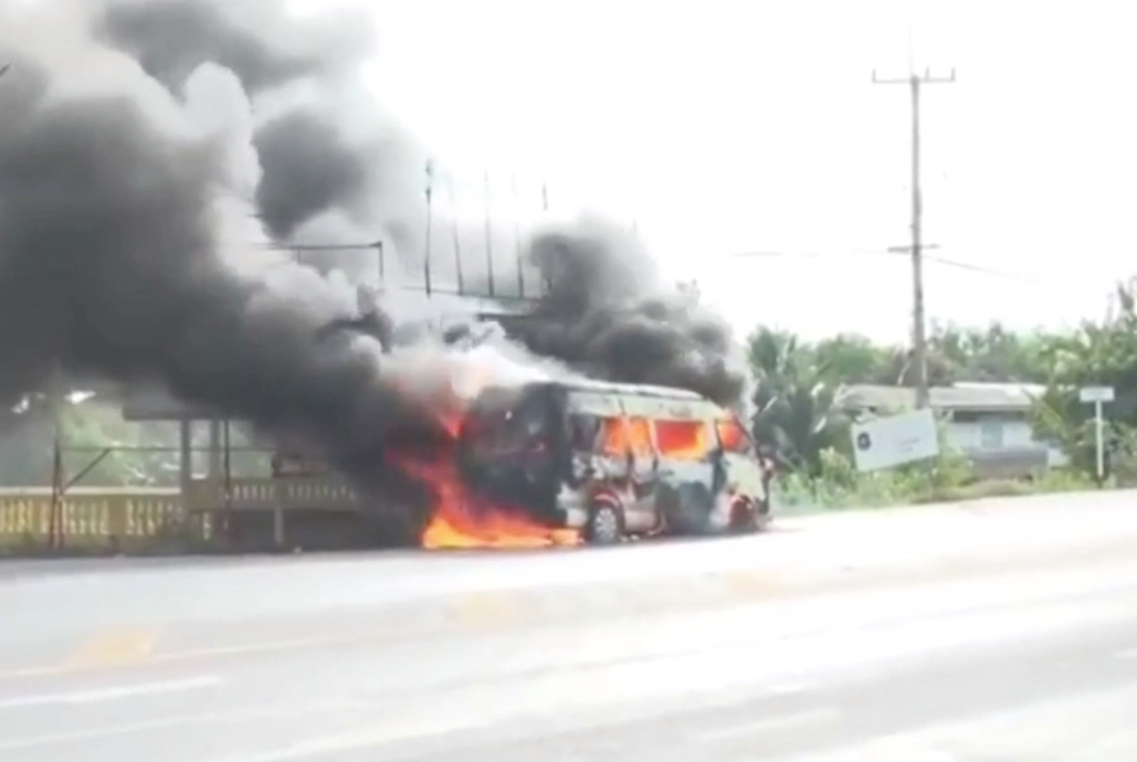 ลพบุรี 10 มิ.ย.- เหตุระทึก! รถตู้โดยสารไฟลุกท่วมทั้งคัน บริเวณถนนสายลพบุรี-สิงห์บุรี หน้าวัดศรีสุทธาวาส ต.พรหมมาสตร์ แต่โชคดีไม่มีผู้โดยสาร จึงไม่มีใครได้รับบาดเจ็บ