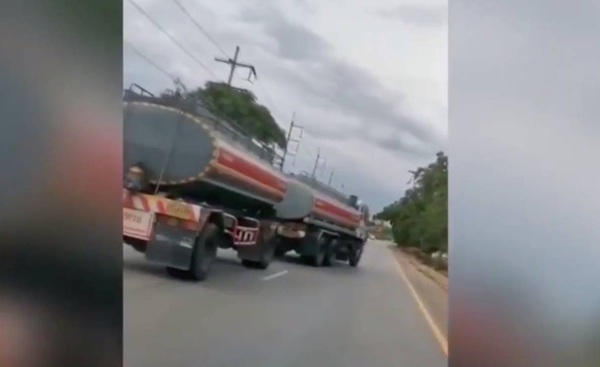 นครราชสีมา 10 มิ.ย.- คลิปรถพ่วงบรรทุกน้ำมัน 3 คันกร่าง ขับปาดหน้า จอดขวางถนน เหตุไม่พอใจที่รถของพรรคพวกถูกตะโกนต่อว่า เพราะขับรถไม่ปลอดภัย