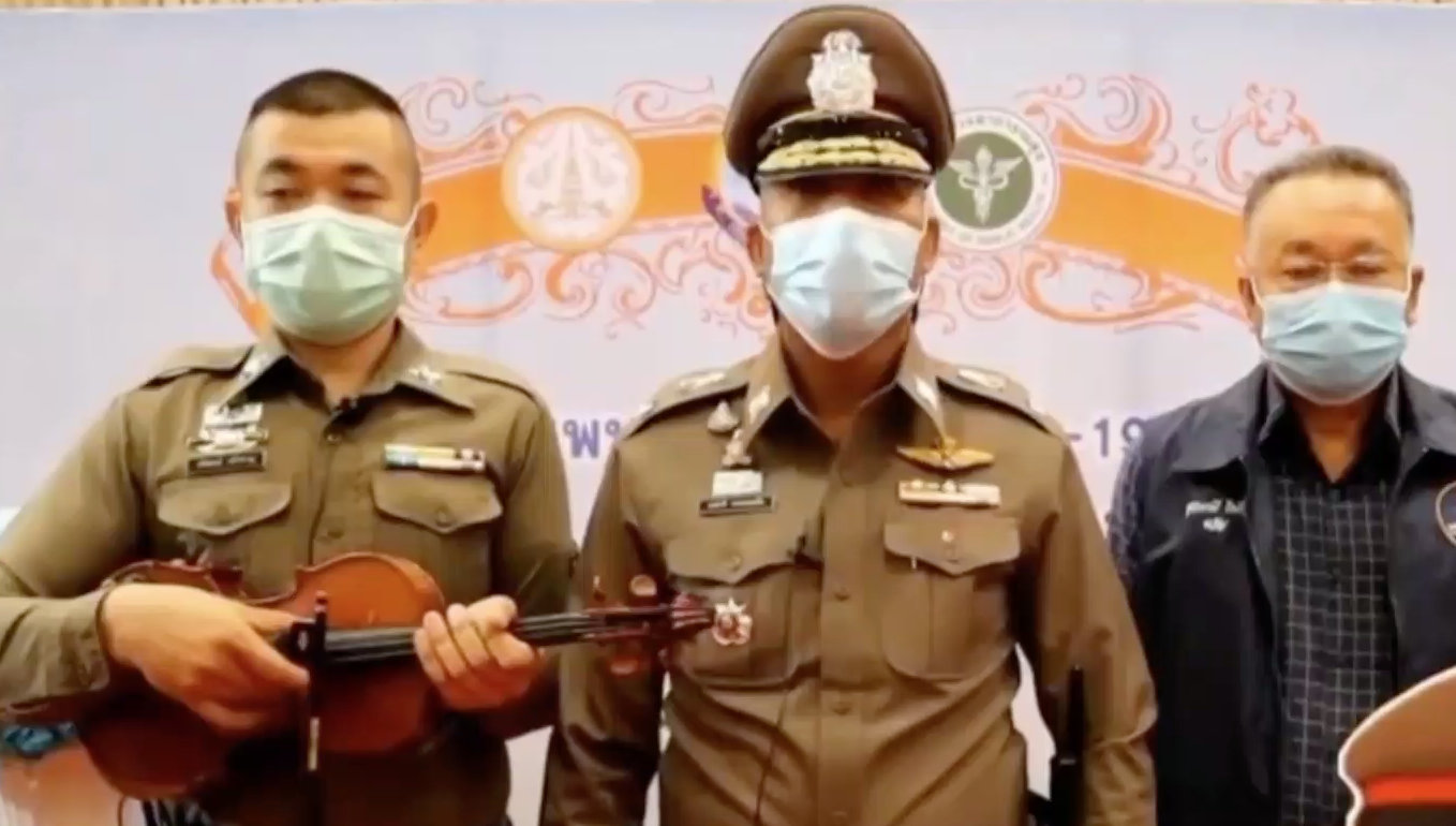 พล.ต.ต.ธนชาติ รอดคลองตัน ผบก.ภ.จว.นครพนม เผยว่าหลังพบว่าผู้ที่เข้ารับการฉีดวัคซีนส่วนหนึ่ง มีความกังวลในหลายๆ เรื่อง ทาง บก.ภ.จว.นครพนม จึงขอมีส่วนร่วมจึงให้ผู้ใต้บังคับบัญชาอย่าง ส.ต.ต.จรัสพงษ์ กล้าหาญ มีความเชี่ยวชาญด้านเครื่องดนตรีไวโอลิน มาบรรเลงเพลงพระราชนิพนธ์ขับกล่อมเพื่อคลายความกังวล จะเห็นว่าผู้มาฉีดวัคซีนโดยเฉพาะผู้สูงอายุอารมณ์ดีเมื่อได้ฟังเพลงที่โด่งดังในอดีต และจะมาบรรเลงให้ทุกท่านฟังจนถึงวันสุดท้าย