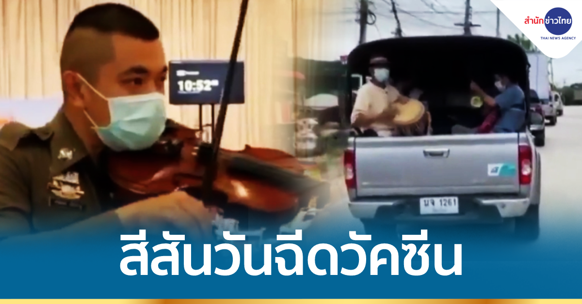 นครพนม 10 มิ.ย.- หลายพื้นที่ต่างสร้างสรรค์กิจกรรมเพื่อผ่อนคลายให้แก่ผู้เข้ารับการฉีดวัคซีน อาทิ จ.นครพนม เชิญเจ้าหน้าที่ตำรวจมาสีไวโอลินมาสร้างเสียงเพลงเพราะๆ ให้แก่ผู้ที่รอรับวัคซีน และที่อ.เเม่เเจ่ม จ.เชียงใหม่ มีการจัดขบวนกลองยาวและรถแห่ไปรับผู้สูงอายุมาฉีดวัคซีน