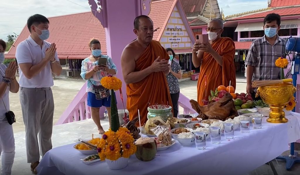 วัดบางม่วง อ.บางใหญ่ จ.นนทบุรี จัดพิธีบวงสรวงในการรื้อถอนเตาเผาศพตัวเก่าที่พังชำรุด หลังจากทางวัดรับฌาปนกิจศพผู้เสียชีวิตจากโควิด-19 ตั้งแต่ต้นเดือนพฤษภาคม 64 มากว่า 40 ศพ ซึ่งตามประเพณีโบราณห้ามมีเตาเผาในที่เดียวกันสองเตา หลังจากเสร็จพิธีบวงสรวงก็ได้ให้ช่างนำเตาเผาศพสำรอง มาติดตั้งไว้ด้านหลังเมรุ เพื่อเผาศพระหว่างรอเตาเผาใหม่