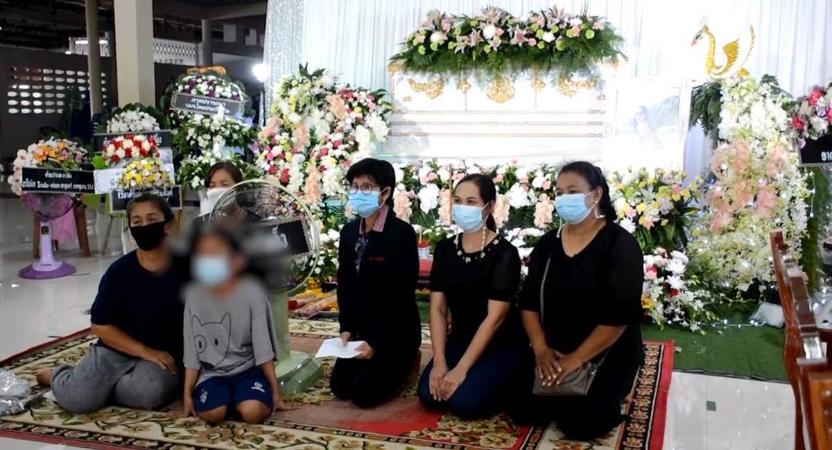 ขณะเดียวกัน ในวันนี้ได้มีคณะผู้บริหารและคณะครูโรงเรียนที่ น้องฟลุค บุตรสาววัย 10 ปีของผู้เสียชีวิตเรียนอยู่ เดินทางนำพวงหรีดมาเคารพศพ พร้อมกับเยี่ยมปลอบขวัญพูดคุยกับ น้องฟลุค ที่ยังอยู่ในอาการเสียใจ และสอบถามความคืบหน้าการเรียนผ่านทางออนไลน์ โดยคณะครูเป็นห่วงว่า น้องฟลุค ที่อยู่ในอาการซึมเศร้าจากการสูญเสียแม่ จะไม่มีสมาธิในการเรียน โดยพร้อมที่จะช่วยในเรื่องการเรียน และเรื่องขวัญกำลังใจให้กับ น้องฟลุค หลังเสร็จสิ้นงานศพ ซึ่งจะตรงกับช่วงเปิดเรียนวันแรก หลังจากปิดการเรียนการสอน เนื่องจากสถานการณ์การแพร่ระบาดโควิด-19. – สำนักข่าวไทย