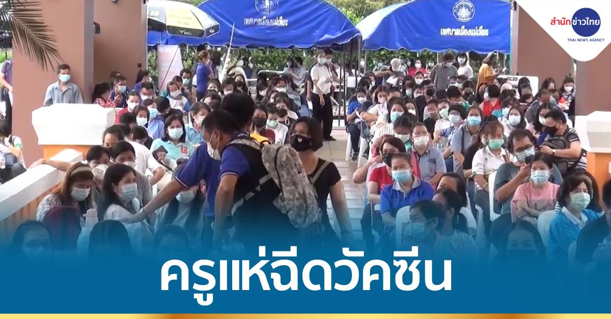 เชียงใหม่ 12 มิ.ย.-ครูที่เชียงใหม่ แห่ฉีดวัคซีนโควิด-19 เตรียมพร้อมรับการเปิดเทอมวันจันทร์นี้ (14 มิ.ย.) ขณะที่จุดบริการอาคารนิทรรศการอุทยานหลวงราชพฤกษ์ คนค่อนข้างหนาแน่น