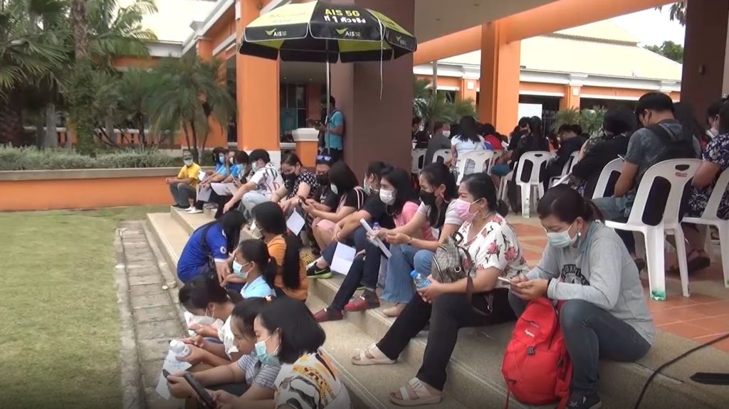 ขณะที่ การมารับบริการด้วยความที่คนมากันค่อนข้างหนาแน่น แม้เจ้าหน้าที่จะจัดเก้าอี้ให้นั่งรอระหว่างทำขั้นตอนกรอกประวัติ วัดความดัน ตรวจวัดไข้ แต่ยังไม่เพียงพอ ทำให้หลายคนต้องไปนั่งตามพื้นระเบียง หรือใต้ต้นไม้เพื่อรอคิวฉีด ซึ่งในวันพรุ่งนี้ก็จะเป็นอีก 1 วัน ที่ครูโรงเรียนเอกชนอีก 2,000 คน ต้องมาฉีดวัคซีนเพื่อเตรียมพร้อมรับการเปิดเทอมในวันจันทร์นี้ (14 มิ.ย.).-สำนักข่าวไทย