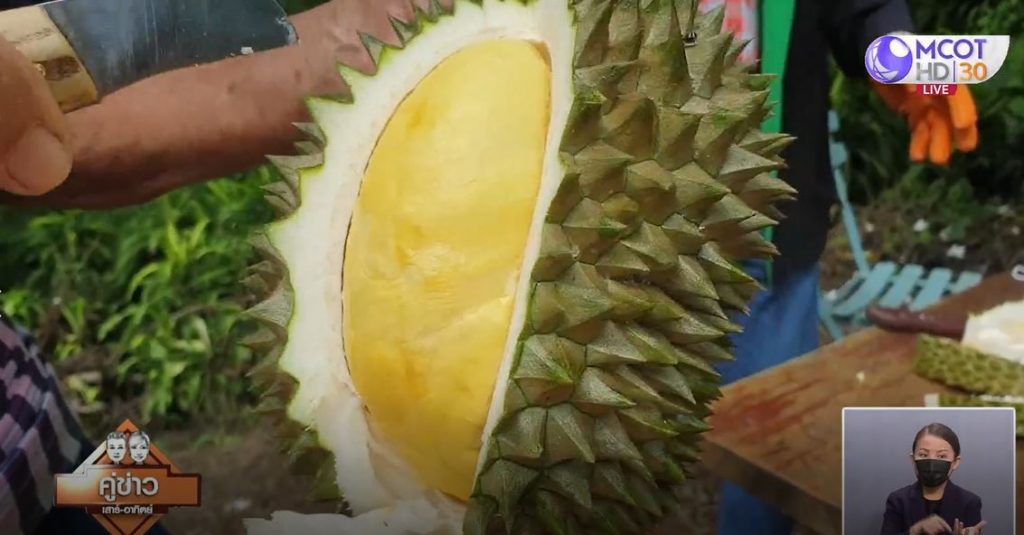 เจ้าของสวนบอกว่า นำพันธุ์ทุเรียนมาจากนนทบุรี และมาปลูกในสวน โดยทุเรียนต้นนี้มีอายุกว่า 40 ปี แต่ละปีจะให้ผลผลิตมากกว่า 100 ลูก จากนั้นจึงแบ่งขายตามน้ำหนัก ประมาณ 1-2 กิโลกรัม ขายลูกละ 3,000 บาท ลูกที่มีน้ำหนัก 2-3 กิโลกรัม ขายลูกละ 5,000 บาท ส่วนลูกที่มีน้ำหนัก 3.5 กิโลกรัมขึ้นไป จะขายราคาลูกละ 10,000 บาท