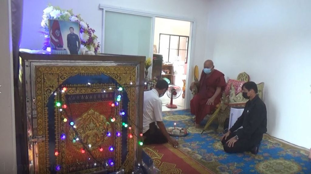 วันนี้ (13 มิ.ย.) ญาติและครอบครัวได้นิมนต์พระสงฆ์เพื่อทำบุญอุทิศส่วนกุศลให้สิบตำรวจเอกปิยะพงษ์ สุรินต๊ะ อายุ 36 ปี ผู้บังคับหมู่งานสืบสวน สภ.แม่โป่ง ช่วยราชการกองบังคับการตำรวจภูธรจังหวัดเชียงใหม่ โดยงานจัดขึ้นในบ้านพักของพ่อ พื้นที่หมู่บ้านป่าเปา ตำบลแช่ช้าง อำเภอสันกำแพง มีชาวบ้าน รวมถึงญาติมาร่วมแสดงความเสียใจ บรรยากาศเป็นไปอย่างโศกเศร้า ก่อนที่ในวันที่ 16 มิถุนายน จะมีพิธีฌาปนกิจที่สุสานประจำหมู่บ้าน