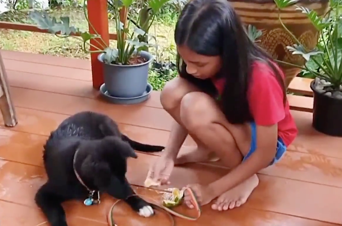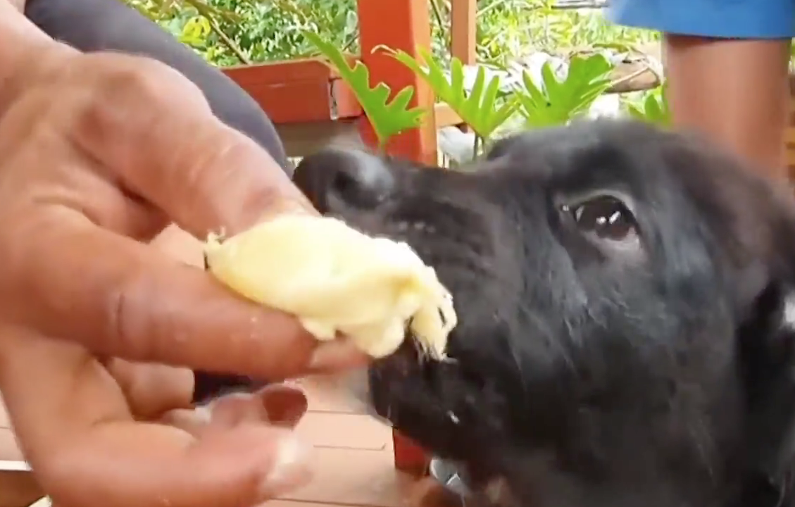 คุณวินัย รัตน์ไทรแก้ว อายุ 41 ปี เจ้าของสวนส้มถุงแป้ง แหล่งท่องเที่ยวเชิงเกษตรชื่อดังใน ต.ตากแดด อ.เมืองพังงา เผยกับผู้สื่อข่าวว่ามีน้องหมาตัวหนึ่งที่ตนเองเลี้ยงไว้มีพฤติกรรมที่แปลกไม่เหมือนกับหมาทั่วไปชอบกินผลไม้โดยเฉพาะทุเรียน เป็นลูกหมาพันธ์ุโกลเด้นรีทรีฟเวอร์ สีดำ อายุ 3 เดือนเศษ ชื่อเฉาก๊วย เป็นน้องหมาที่ขี้เล่น เป็นมิตร ไม่ดุร้าย แต่ที่น่ารักกว่านั้น มันจะชอบกินผลไม้ ทุเรียน ส้มเขียวหวาน เงาะ มังคุด กินหมดกินทุกอย่างที่เป็นผลไม้