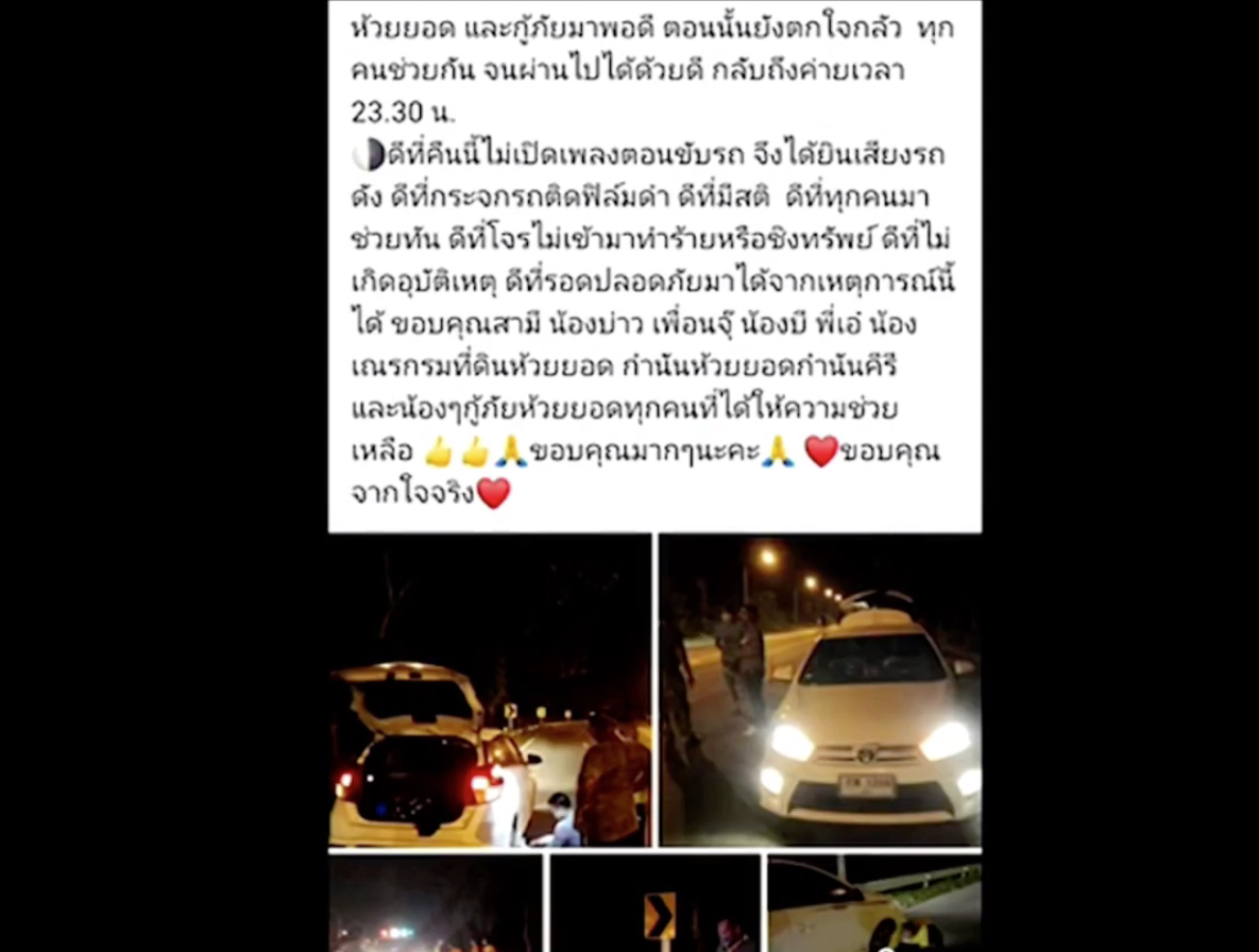 พยาบาลสาวโรงพยาบาลห้วยยอด อ.ห้วยยอด จ.ตรัง โพสต์เล่านาทีชีวิต หวังเตือนภัย ระบุ วันที่ 8 มิถุนายนที่ผ่านมา ขณะขับรถยนต์กลับบ้านหลังออกเวร มาถึงบริเวณถนนเพชรเกษม ช่วงบ้านน้ำพราย ต.ปากคม อ.ห้วยยอด ซึ่งเป็นทางเปลี่ยวไม่มีไฟฟ้าส่องสว่าง ได้ยินเสียงดังที่ล้อรถ จึงจอดรถดูริมไหล่ทางปรากฏว่ายางรั่ว จึงรีบโทรหาสามี และเพื่อน เพื่อรอคนมาช่วย ระหว่างนั้นมีชายวัยรุ่นรูปร่างผอม ขี่รถจักรยานยนต์ไม่ติดแผ่นป้ายทะเบียน วนเวียนอยู่หลายรอบ ก่อนจะมาจอดด้านข้างรถของตนและเคาะกระจก โดยไม่ส่งเสียงนานหลายนาที ด้วยความตกใจเพราะเป็นผู้หญิงคนเดียว จึงปรับเบาะเอนเลงนอนอยู่นิ่งๆ ก่อนที่ชายดังกล่าวจะขับรถออกไป ตนจึงโทรแจ้งตำรวจสภ.ห้วยยอดเข้ามาช่วยเหลือ