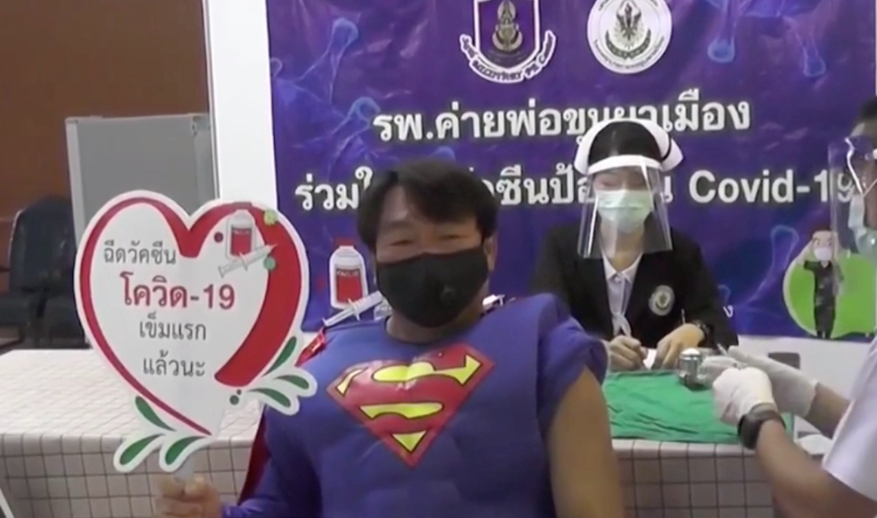 สถานที่ดังกล่าวจัดเป็นสถานที่สำหรับฉีดวัคซีนโควิด-19 ของโรงพยาบาลค่ายพ่อขุนผาเมือง โดยมีประชาชนได้ทยอยกันมาอย่างต่อเนื่อง ระหว่างนั้นได้มีชายแต่งกายด้วยชุดซูเปอร์แมน สีน้ำเงิน ผ้าคลุมสีแดง โดยเมื่อมาถึงซูเปร์แมน ตรวจวัดอุณหภูมิซึ่งอยู่ในเกณฑ์ปกติ จากนั้นก็ไปวัดความดันปรากฏว่า ความดันสูงถึง 189/95 ซึ่งถือว่าสูง จึงยังไม่สามารถฉีดวัคซีนได้ เจ้าหน้าที่จึงให้ไปนั่งพักผ่อน โดยซูเปอร์แมนพูดติดตลกว่า สงสัยเหาะมาไกลความดันเลยขึ้น เมื่อนั่งพัก 15 นาทีแล้ว จึงไปวัดความดันใหม่อีกครั้ง โดยวัดได้ 156/82 ซึ่งอยู่ในเกณฑ์ที่ฉีดวัคซีนได้ โดยวัคซีนที่ฉีดให้ในครั้งนี้คือ แอสตร้าเซเนก้า เพราะเป็นผู้ป่วยอยู่ใน 7 โรคกลุ่มเสี่ยง หลังฉีดวัคซีนแล้ว ได้นั่งพักสังเกตอาการ 30 นาที ซึ่งก็ไม่พบอาการผิดปกติแต่อย่างใด เจ้าหน้าที่จึงอนุญาตให้กลับบ้านได้ พร้อมทั้งนัดหมายมาฉีดเข็มที่ 2 วันที่ 30 กันยายน 2564