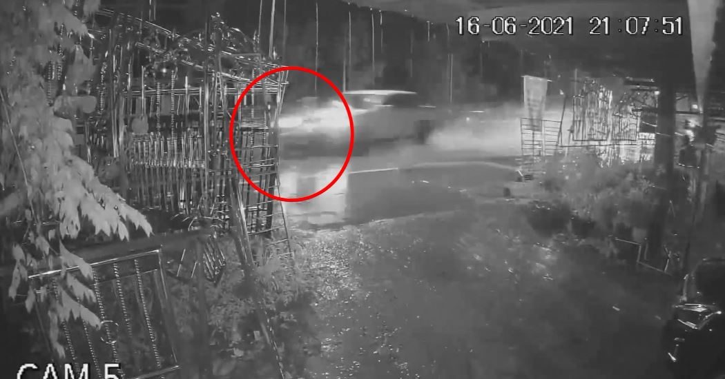นี่เป็นภาพนาทีรถกระบะที่ขับตามหลังรถจักรยานยนต์บริเวณถนนอ้อมเมือง หัวสนามบิน ตำบลไร่น้อย อำเภอเมืองอุบลราชธานี ช่วงเวลานั้น เกิดเหตุมีฝนตกหนักทำให้มีน้ำท่วมขังบนผิวถนนในบางจุด ประกอบกับเป็นทางโค้ง รถกระบะที่วิ่งมาด้วยความเร็ว เสียหลักจนพุ่งชนท้ายรถจักรยานยนต์