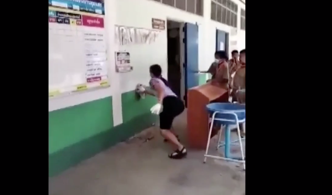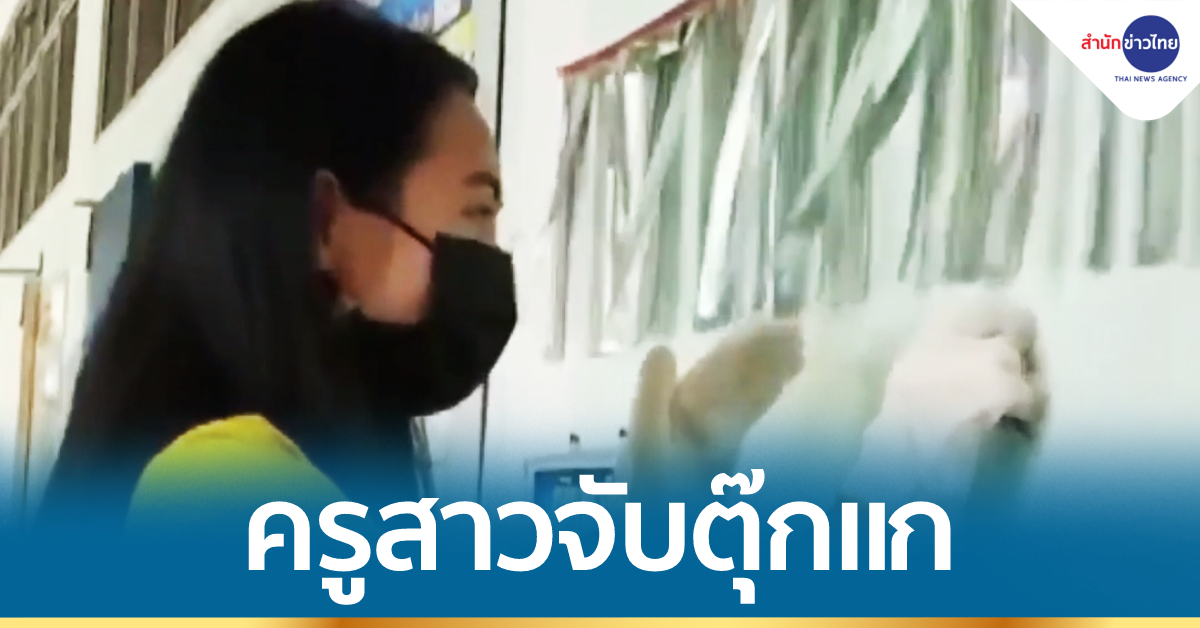 บุรีรัมย์ 17 มิ.ย.- โซเชียลเเชร์คลิปครูสาวใจกล้า จับตุ๊กแกเกาะหน้าห้องท่ามกลางเสียงลุ้นเชียร์ให้กำลังใจของนักเรียน