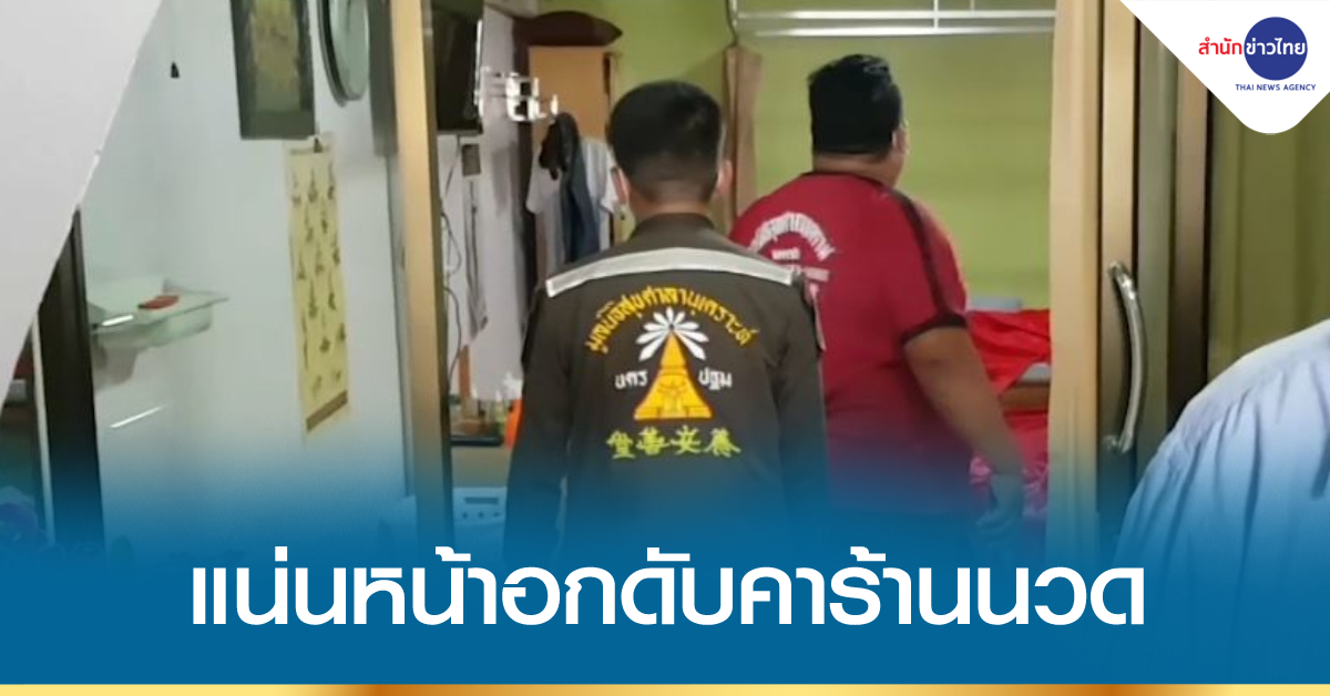ตำรวจ สภ.เมืองนครปฐม ได้รับแจ้งมีผู้เสียชีวิต ภายในร้านนวดแผนไทยแห่งหนึ่ง ต.สนามจันทร์ อ.เมืองนครปฐม หลังรับแจ้งจึงไปตรวจสอบพร้อมชุดสืบสวน แพทย์โรงพยาบาลนครปฐม และมูลนิธิสุขศาลานุเคราะห์