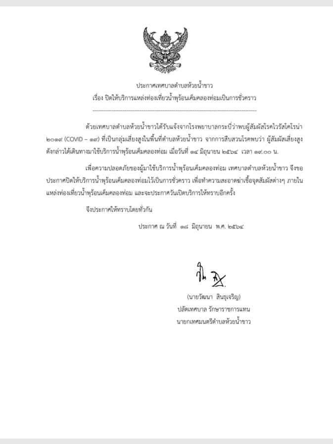 กระบี่ 19 มิ.ย. – เทศบาลตำบลห้วยน้ำขาว จ.กระบี่ ประกาศปิดน้ำพุร้อนเค็มคลองท่อมชั่วคราว หลังพบไทม์ไลน์ผู้ที่เดินทางมาจาก จ.ยะลา ติดโควิด 4 ราย มาเที่ยวน้ำพุร้อนเค็ม ขณะที่นักเรียนฮาฟิซมัรกัสยะลาที่เดินทางกลับบ้านที่ จ.กระบี่ พบติดเชื้อแล้ว 15 ราย คาดเป็นสายพันธุ์แอฟริกา ด้าน สสจ.กระบี่ เร่งส่งตัวอย่างตรวจหาสายพันธุ์แล้ว