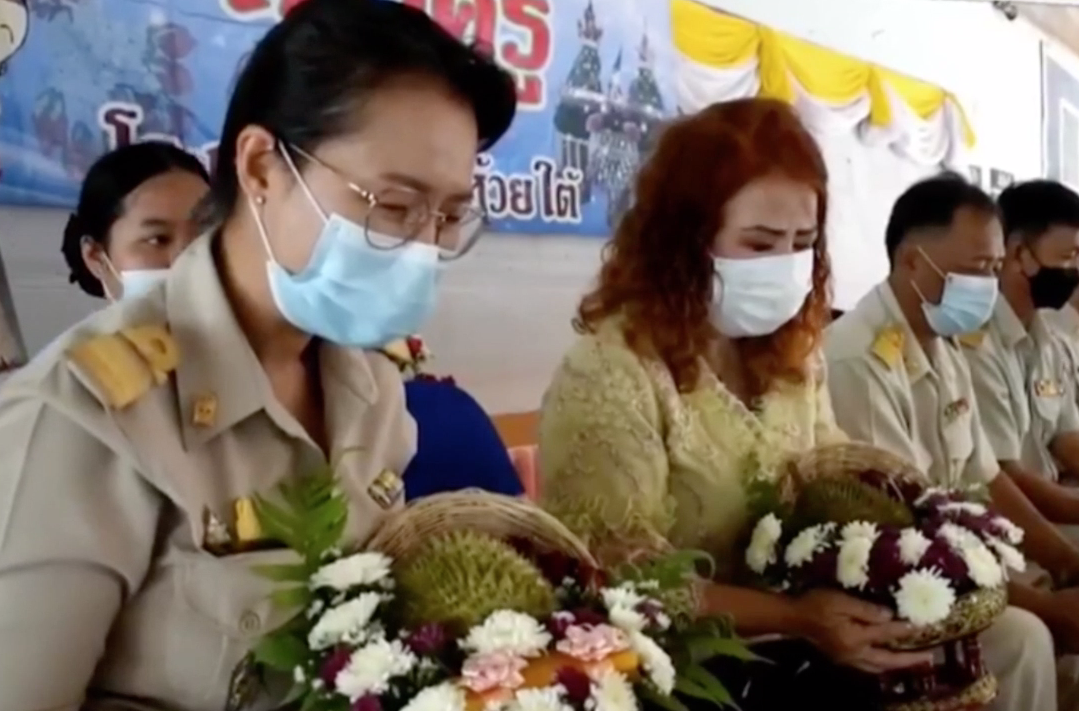 นางนาตยา เกตุวงศ์ ผอ.โรงเรียนบ้านห้วยใต้ การจัดกิจกรรมไหว้ครูประจำปีการศึกษา 2564 ภายใต้มาตรการป้องกันการระบาดโควิด-19 แต่ยังกำหนดจัดกิจกรรม เพราะเป็นประเพณีของไทยแต่โบราณ ระลึกถึงบุญคุณครู มอบหมายให้ตัวแทนแต่ละห้องเรียนทำพานไหว้ครูประจำชั้นของตัวเอง เพื่อไม่ให้รวมกลุ่มกัน และหอประชุมเปิดโล่งทุกด้าน อากาศถ่ายเทสะดวก เด็กๆนั่งห่างกัน และเป็นมิติใหม่ของจัดทำพานเชิงสร้างสรรค์ เด็กๆ เน้นของกินของดีที่มีในท้องถิ่นของตัวเอง นั่นก็คือ ทุเรียนหลง-หลินลับแล กำลังให้ผลผลิตออกสู่ตลาด เป็นที่ชื่นชอบ ถูกใจคุณครู มาทั้งลูก ปอกเนื้อพร้อมทาน ทุเรียนแปรรูป ส่วนเมล็ดและต้นกล้านั้น จะนำเพาะและปลูกบริเวณของโรงเรียนต่อไป.-สำนักข่าวไทย