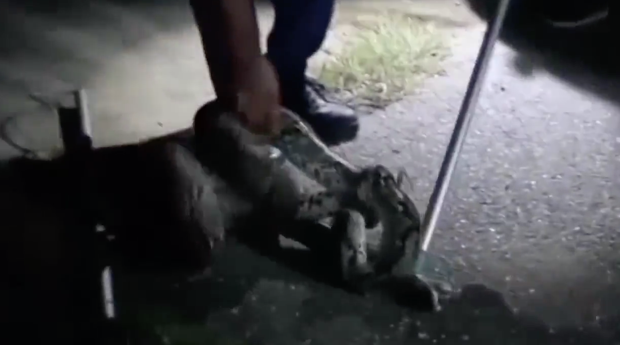 เจ้าหน้าที่กู้ภัยช่วยกันจับงูเหลือมยักษ์ลำตัวยาวประมาณ 4 เมตร หลังรับแจ้งจากพนักงานโรงแรม ชื่อดังแห่งหนึ่งในตัวเมืองสุราษฎร์ธานี งูตัวนี้เลื้อยวนเวียนอยู่ภายในลานจอดรถด้านข้างโรงแรม เจ้าหน้าที่ใช้อุปกรณ์จับงูคล้องคอ แต่งูพยายามหลบหนี ต้องใช้เวลาอยู่ประมาณ 15 นาที จึงสามารถคล้องคองูได้สำเร็จ และนำใส่กระสอบเพื่อที่จะนำไปปล่อยกลับคืนสู่ธรรมชาติ