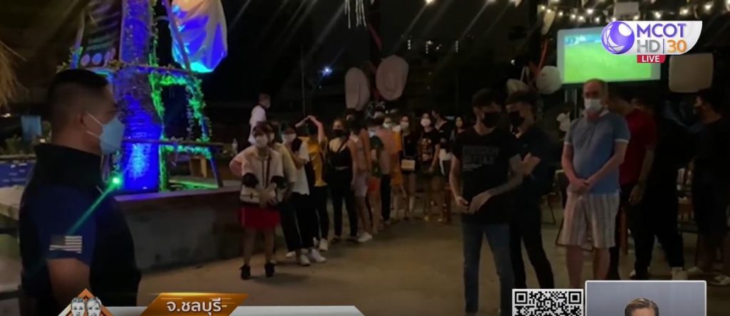 กำลังตำรวจชุดสืบสวนจังหวัดชลบุรี และ สภ.เมืองพัทยา เข้าจับกุมร้านอาหารริมถนนพัทยาใต้ หลังสืบทราบว่าขายเหล้าโดยเปิดเป็นร้านอาหารบังหน้า แต่แอบให้นักดื่มทั้งชาวไทยและชาวต่างประเทศเข้าไปนั่งดื่มสุราและสูบบารากู่ มั่วสุม บางรายไม่สวมหน้ากากอนามัย โดยไม่พบมาตรการป้องกันอย่างเข้มงวด เสี่ยงต่อการแพร่ระบาดของเชื้อโควิด-19 จนเกรงว่าจะเกิดเป็นคลัสเตอร์ใหม่ โดยร้านแรกจับกุมนักดื่มได้ 28 คน ผู้ดูแลร้าน 1 คน พร้อมเครื่องดื่มแอลกอฮอล์