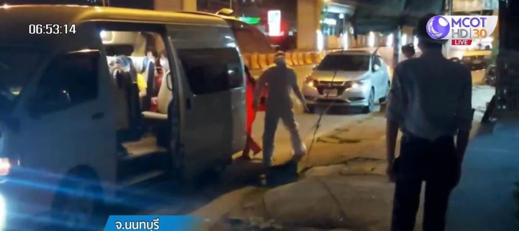 นนทบุรี 28 มิ.ย. – เจ้าหน้าที่สวมชุด PPE ขนแรงงานต่างด้าวติดเชื้อโควิด-19 กว่า 60 คน ออกจากโรงงานทอผ้า ส่งไปรักษาที่โรงพยาบาลสนาม ขณะที่ชาวบ้านคิดว่าแรงงานเก็บสัมภาระหนีปิดแคมป์