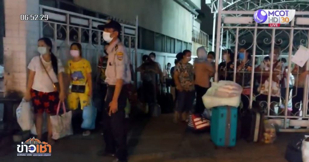 เมื่อคืนที่ผ่านมา (27 มิ.ย.) บริเวณหน้าโรงงานทอผ้าแห่งหนึ่ง ตรงข้ามห้างสรรพสินค้าบิ๊กซี ถนนแจ้งวัฒนะ อำเภอปากเกร็ด จังหวัดนนทบุรี ผู้สื่อข่าวสำนักข่าวไทยลงพื้นที่ตรวจสอบ หลังพบรถตู้ 2 คัน และพบแรงงานต่างด้าวประมาณ 60 คน พร้อมสัมภาระ เดินทางขึ้นรถตู้ที่รออยู่หน้าโรงงาน และมีเจ้าหน้าที่สวมชุด PPE คอยขานรายชื่อและตรวจสอบประวัติอย่างละเอียด