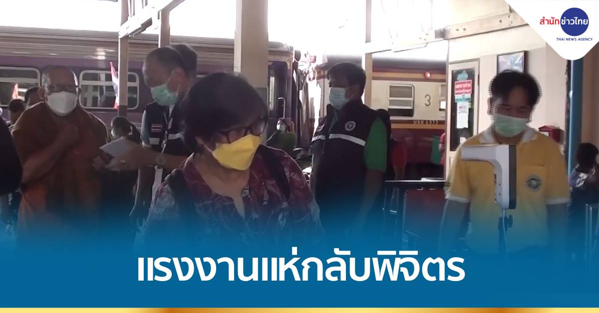พิจิตร 28 มิ.ย.-สาธารณสุขพิจิตร รายงานพบแรงงานแห่กลับเข้าจังหวัดแล้วกว่าพันคน จนท.สนธิกำลังคัดกรองเข้มสถานีรถไฟ