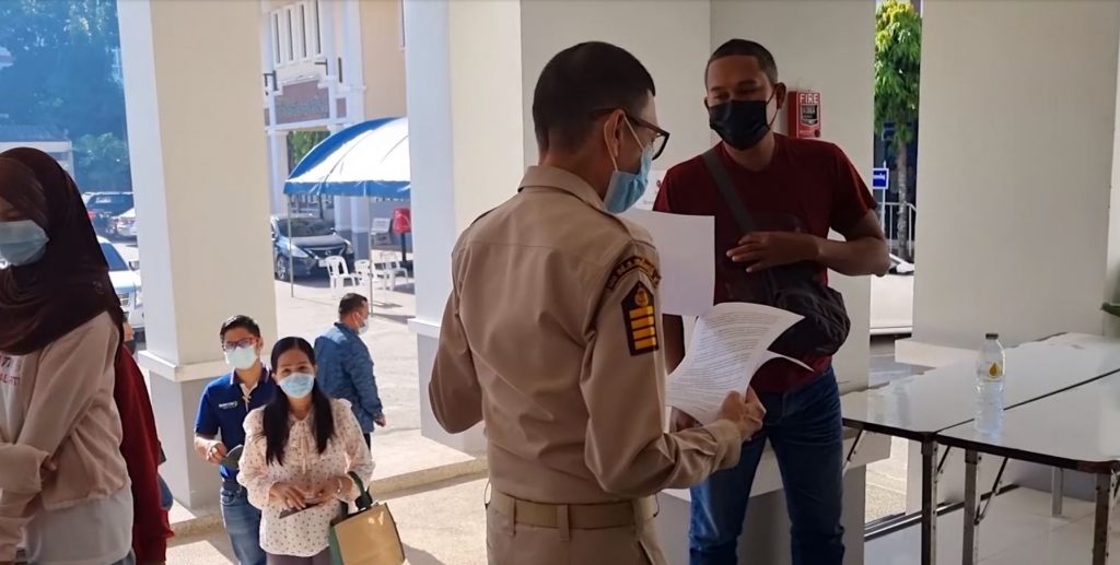 สงขลา 28 มิ.ย.-บรรยากาศล็อกดาวน์สงขลาวันแรก ประชาชนไปขอเอกสารรับรองความจำเป็นเดินทางออกจากจังหวัด ตั้งแต่เช้า ทั้งคนทำงาน ผู้ประกอบธุรกิจและประชาชนที่เดินทางกลับภูมิลำเนา