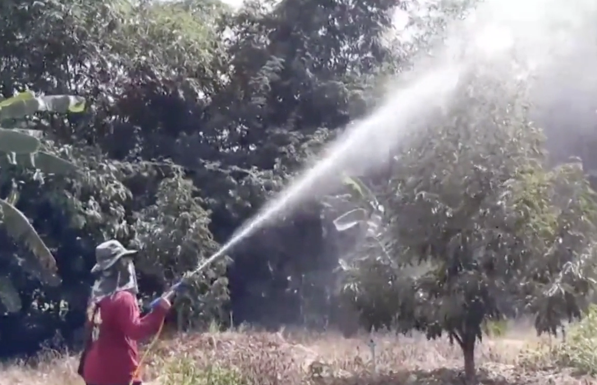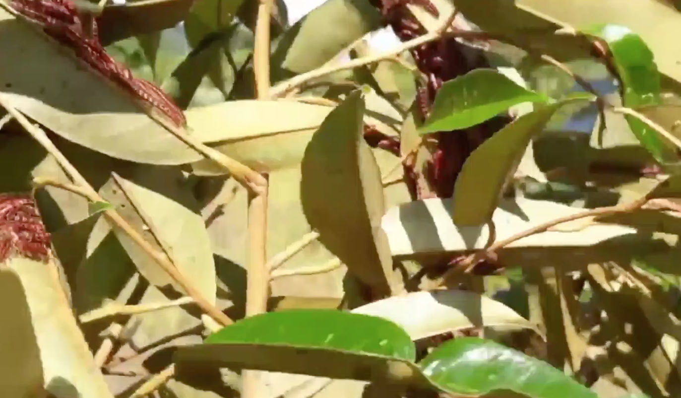 นางทองคำ สิงขรณ์ อายุ 64 ปี เจ้าของแปลงทุเรียน บอกว่าแมลงที่พบบนต้นทุเรียน ชาวบ้านแถบนี้เรียกว่า “ตัวเหน็บ” แต่ไม่เคยพบเห็นจำนวนมากขนาดนี้มาก่อน เมื่อ 2 วันก่อน ขณะกำลังใส่ปุ๋ยในสวน พบมี “ตัวเหน็บ” 30-40 ตัว รุมกัดกินยอดมะพร้าวต้นเล็กที่เพิ่งปลูกได้ปีเศษจนเสียหาย
