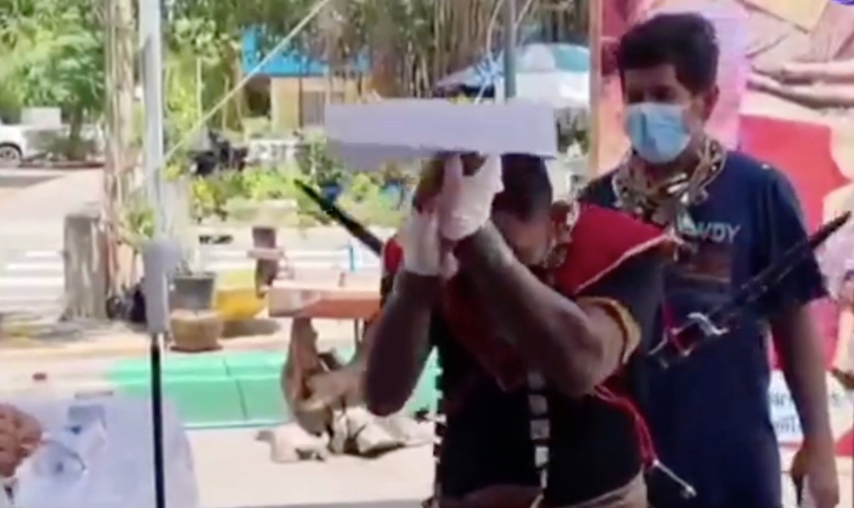 ด้านนายวรพจน์ ขำประเสริฐ อายุ 37 ปี ซึ่งสวมชุดนักรบมาฉีดวัคซีนบอกว่า ตนเป็นคนกลัวเข็มเช่นกัน ที่บ้านมีชุดนักรบอยู่จึงหยิบมาสวมใส่เพื่อสร้างขวัญกำลังใจให้กับตนเอง แต่พอได้ฉีดวัคซีนก็รู้สึกกลัวบ้างเพราะไม่ค่อยได้ฉีดยา แต่พอสวมชุดนี้ก็ฮีกเหิมมีกำลังใจมากขึ้น