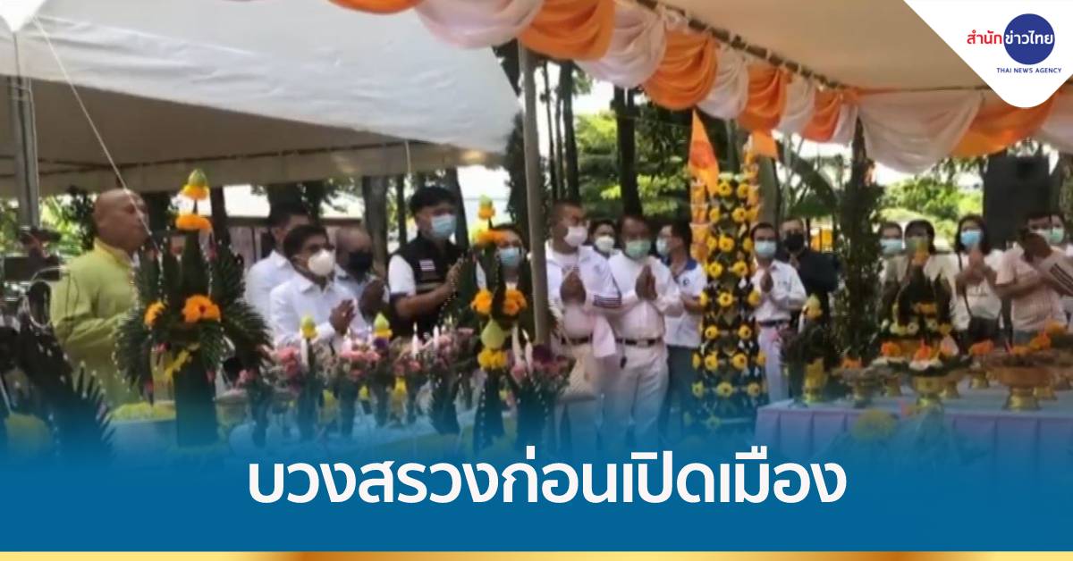 วันนี้ ประชาชนชาวภูเก็ต ตลอดจนหัวหน้าส่วนราชการ องค์กรภาคเอกชน ร่วมพิธีเจริญพระพุทธมนต์และบวงสรวงท้าวเทพกระษัตรีท้าวศรีสุนทร ที่วัดม่วงโกมารภัจจ์ ประกอบพิธีทางศาสนาพุทธและพราหมณ์ เพื่อความเป็นสิริมงคลและเสริมสร้างขวัญและกำลังใจ ให้การดำเนินการทุกอย่างเป็นไปด้วยความเรียบร้อย เพื่อให้สามารถฟื้นเศรษฐกิจ และสามารถควบคุมโรคได้ จนประสบความสำเร็จตามที่วางไว้. – สำนักข่าวไทย