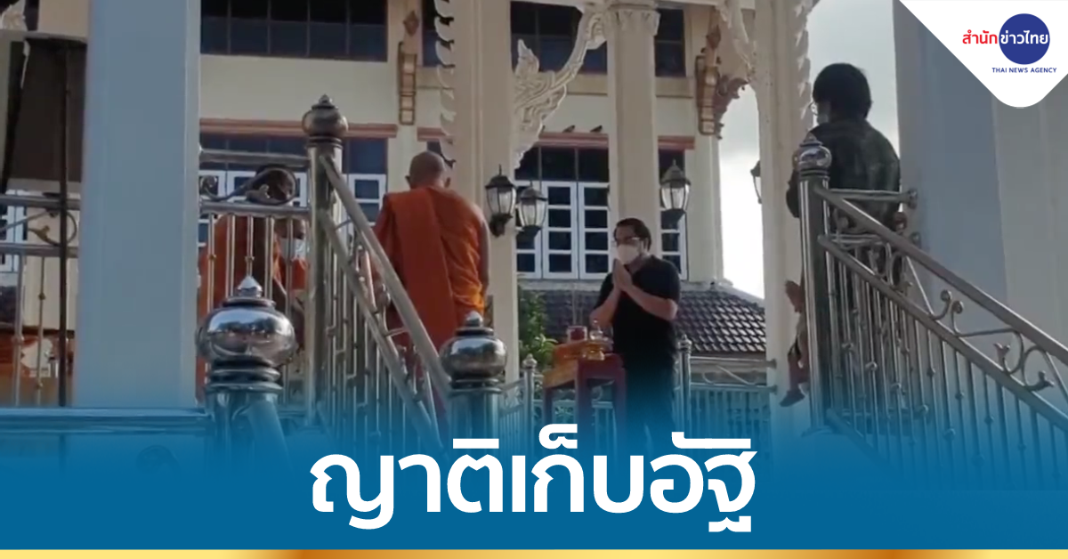 นครนายก 4 ก.ค.- ครอบครัวธรรมนิยม เดินทางมาเก็บเถ้ากระดูกนายชายชาญ ธรรมนิยม ลูกชายอดีตรองผู้ว่าฯ นครนายก หลังเสียชีวิตด้วยโควิด-19 สายพันธุ์เดลต้า