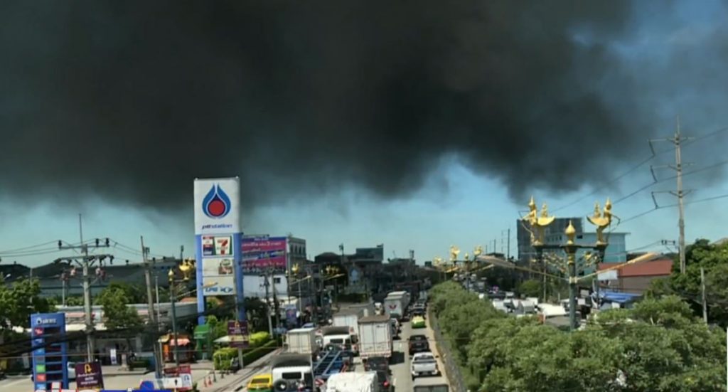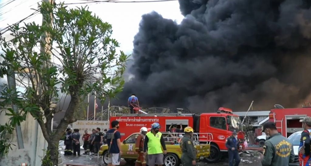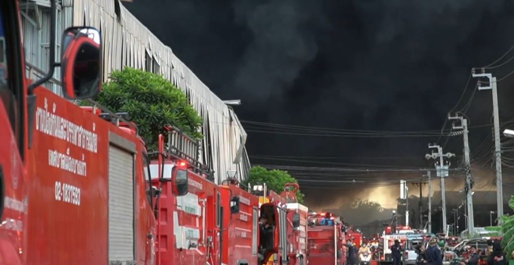 สมุทรปราการ 5 ก.ค. – เหตุไฟไหม้โรงงานโฟมและเม็ดพลาสติกตั้งแต่เมื่อเช้ามืดที่ผ่านมา เจ้าหน้าที่กั้นพื้นที่อพยพผู้ที่ไม่เกี่ยวข้องออกนอกพื้นที่ในรัศมี 5 กิโลเมตร เบื้องต้นมีผู้บาดเจ็บ 21 คน มีผู้ติดอยู่ข้างในโรงงาน 1 คน ขณะที่บ้านเรือนประชาชนและโรงงานใกล้เคียงได้รับความเสียหายด้วย