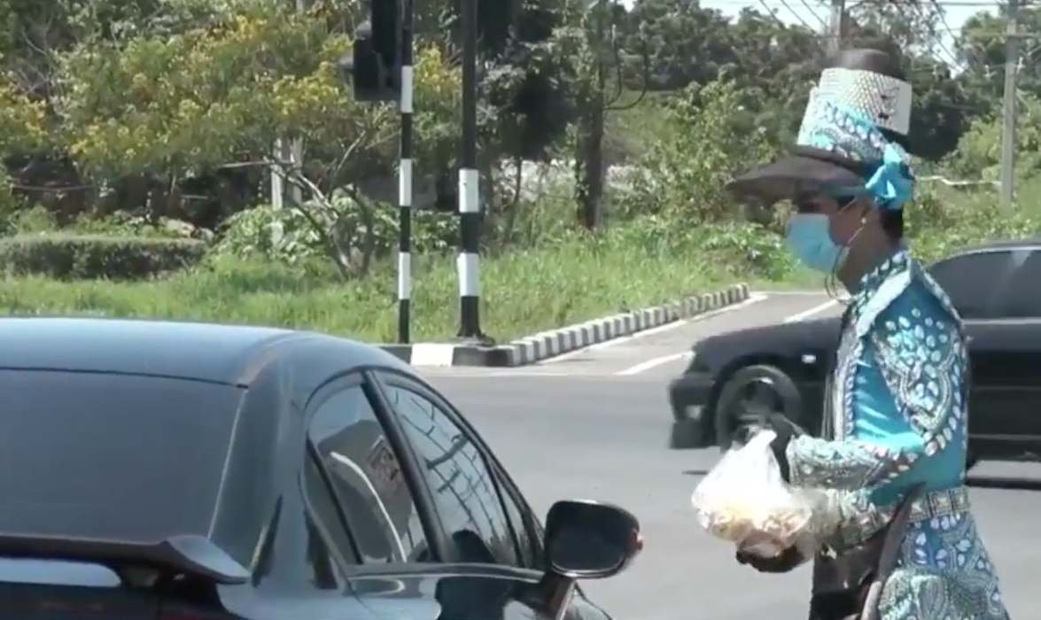 บริเวณสี่แยกไฟแดง ต.เขาพระงาม อ.เมือง ลพบุรี มีคนแต่งกายด้วยชุดลิเกสวยหรู เดินขายขนมห่อกับประชาชนที่สัญจรไปมา มีผู้อุดหนุนจอดซื้อ บางคันต้องวนมาซื้ออีกครั้ง เพื่อขอถ่ายรูป แต่เมื่อเหล่าบรรดาแม่ยกสาวน้อยสาวใหญ่ เห็นใบหน้าจริงๆ ถึงกับกรี๊ดเทกระเป๋าอุดหนุนขนมจนเกลี้ยง สร้างสีสัน สร้างความสุขในสภาพอากาศที่ร้อนระอุให้ผ่อนคลาย สร้างรอยยิ้มในสถานการณ์วิกฤตได้ดี