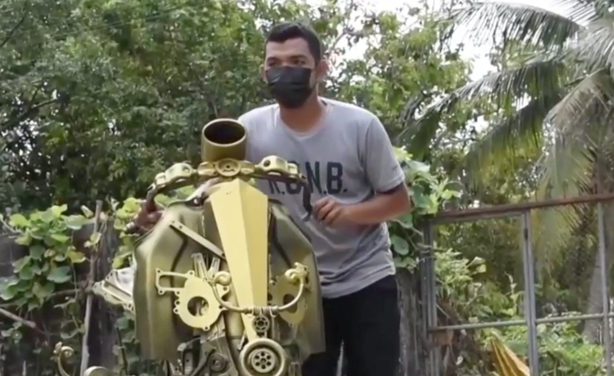 นายมูฮัมหมัดอาดัม จึงได้นำเงินจำนวนหนึ่งไปหาซื้อเศษเหล็กและชิ้นส่วนโลหะ ตามร้านค้าที่รับซื้อของเก่าในราคากิโลกรัมละ 20 บาท แล้วนำมาเชื่อมติดกันในรูปแบบต่างๆ ตามแนวคิดโดยเน้นราคาไม่แพงและเหมาะสมกับชิ้นงาน ซึ่งจะสร้างชิ้นงานเล็กๆ คนส่วนใหญ่สามารถจับจองเป็นเจ้าของได้ อาทิ ที่วางโทรศัพท์มือถือรูปแบบต่างๆ ที่สามารถขยับได้ อย่างหุ่นยนต์ รถยนต์ โคมไฟ ที่มีราคาตั้งแต่ 290 บาท ถึงราคา 1,800 บาท ซึ่งพอจำหน่ายได้แต่ตลาดไม่กว้างมากนัก