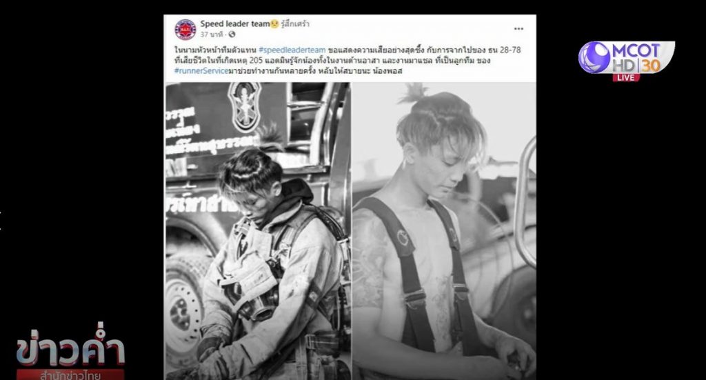 นอกจากนี้ผู้ใช้เฟซบุ๊ก Speed leader team โพสต์ว่า “แอดมินรู้จักน้องทั้งในงานด้านอาสา และงานมาแชลที่เป็นลูกทีมของ #runnerService มาช่วยทำงานกันหลายครั้ง หลับให้สบายนะ น้องพอส”