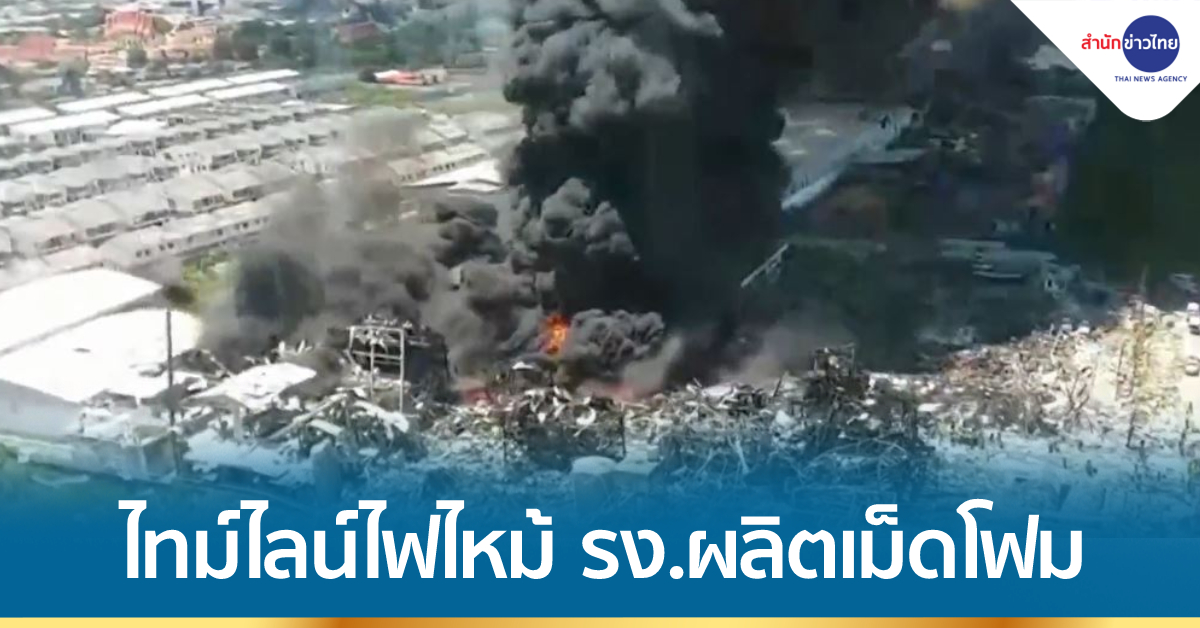 สมุทรปราการ 5 ก.ค. – เปิดไทม์ไลน์ไฟโรงงานผลิตเม็ดโฟมพลาสติก อ.บางพลี จ.สมุทรปราการ ล่าสุดมีนักผจญเพลิงบาดเจ็บ 11 คน ชาวบ้าน 15 คน บ้านเสียหาย 70 หลัง รถเสียหาย 15 คัน