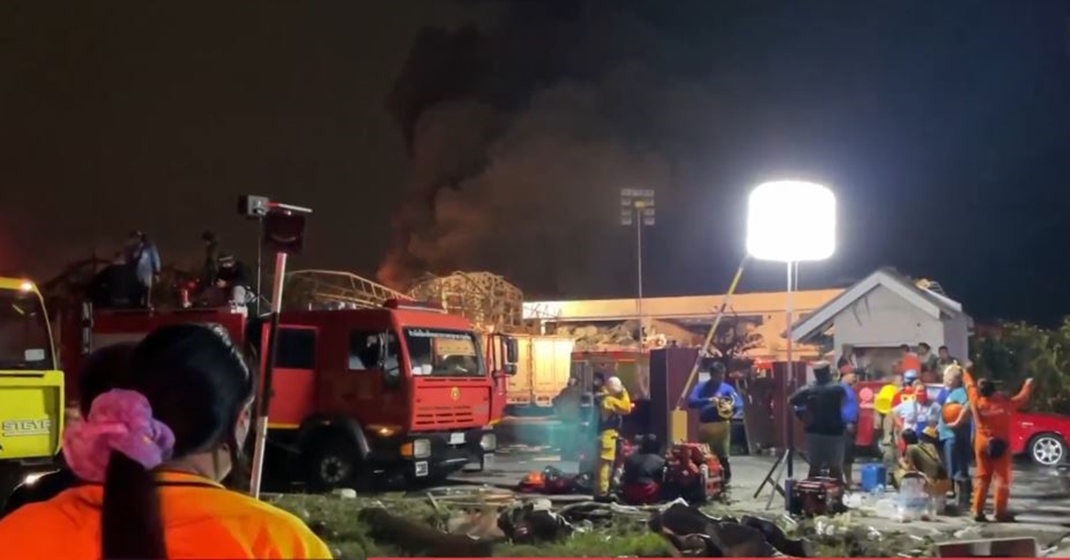 สมุทรปราการ 5 ก.ค. – เหตุเพลิงไหม้โรงงานผลิตเม็ดโฟมพลาสติก ย่านกิ่งแก้ว อ.บางพลี จ.สมุทรปราการ ล่าสุดเมื่อเวลาประมาณ 21.00 น. โฟมของเจ้าหน้าที่ที่ใช้ในการฉีดสกัดเพลิงนั้นหมด ทำให้เปลวเพลิงปะทุขึ้นอีกครั้ง เจ้าหน้าที่และสื่อมวลชนจึงต้องอพยพออกมาอยู่บริเวณภายนอกโรงงานก่อน เพื่อความปลอดภัย