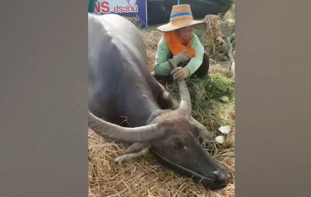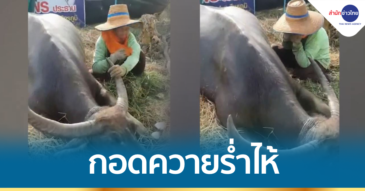 นางอยู่ มีศิริ ภรรยาของนายสนั่น มีศิริ ผู้ใหญ่บ้านกรวด ต.หนองขวาว อ.ศีขรภูมิ จ.สุรินทร์ นั่งกอดควายแม่พันธุ์ที่ซื้อมาในราคา 50,000 บาท ร้องไห้แทบขาดใจ หลังล้มตายด้วยโรคลัมปี สกิน