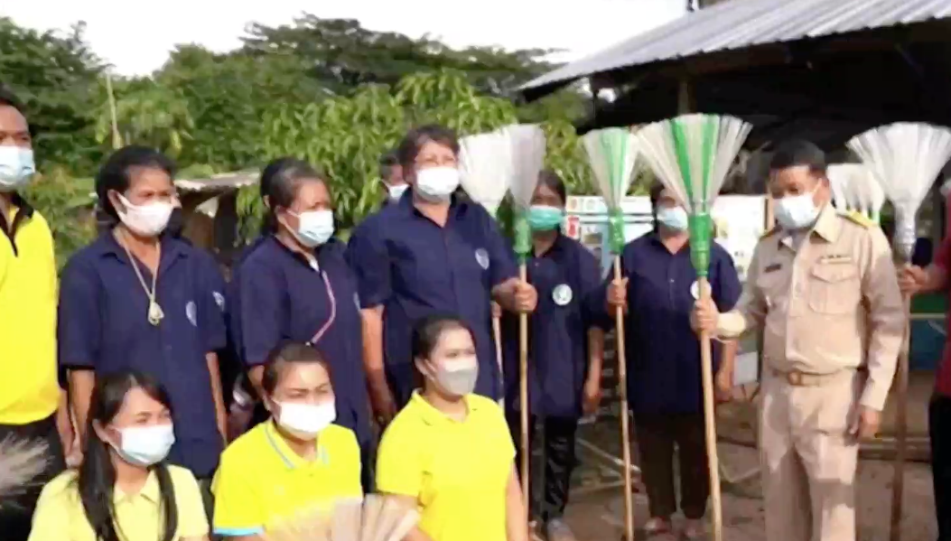 สมาชิกของกลุ่มไม้กวาดรักษ์โลก ต.บ้านดง อ.อุบลรัตน์ จ.ขอนแก่น กำลังช่วยกันทำไม้กวาดรักษ์โลก เพื่อเตรียมจำหน่ายให้กับลูกค้าหลังมีการสั่งซื้อผ่านออนไลน์เข้ามา ซึ่งไม้กวาดรักษ์โลกที่นี่ เป็นการใช้ขวดน้ำอัดลมพลาสติกมาทำเป็นไม้กวาด มีความทนทาน