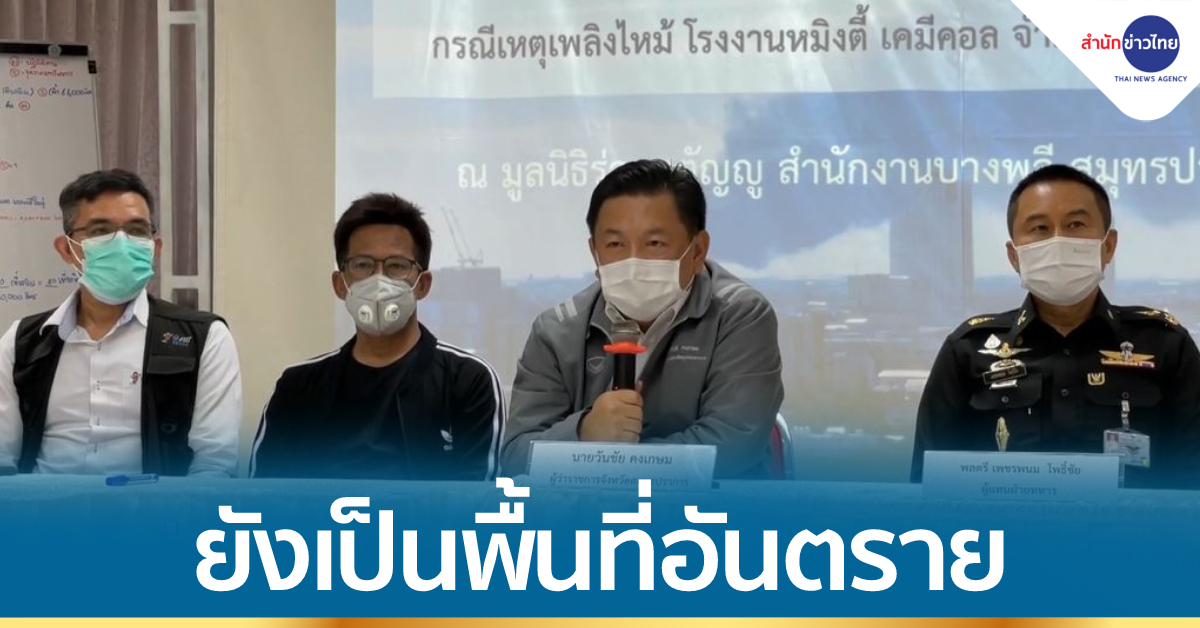 สมุทรปราการ 7 ก.ค. – ผู้ว่าฯ สมุทรปราการ แถลงในรัศมี 1 กม.จากที่เกิดเหตุไฟไหม้โรงงานหมิงตี้ ยังเป็นพื้นที่อันตราย และอนุญาตให้ประชาชนที่อาศัยห่างจากโรงงานหมิงตี้ เกินรัศมี 1 กม. กลับเข้าพื้นที่ได้ ขณะที่ชาวบ้านรวมตัวเรียกร้องค่าเสียหายบ้านพัง