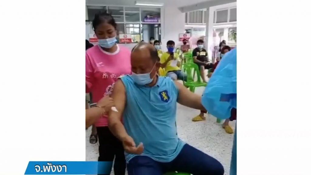 พังงา 9 ก.ค.-น่ารักปนฮา กำนันรายหนึ่งต้องเข้ารับการฉีดวัคซีนโควิด-19 แต่กว่าจะได้ฉีด ต้องให้ทั้งภรรยาและพยาบาลช่วยกันกล่อม และหลอกล่ออยู่นาน เพราะกลัวเข็ม