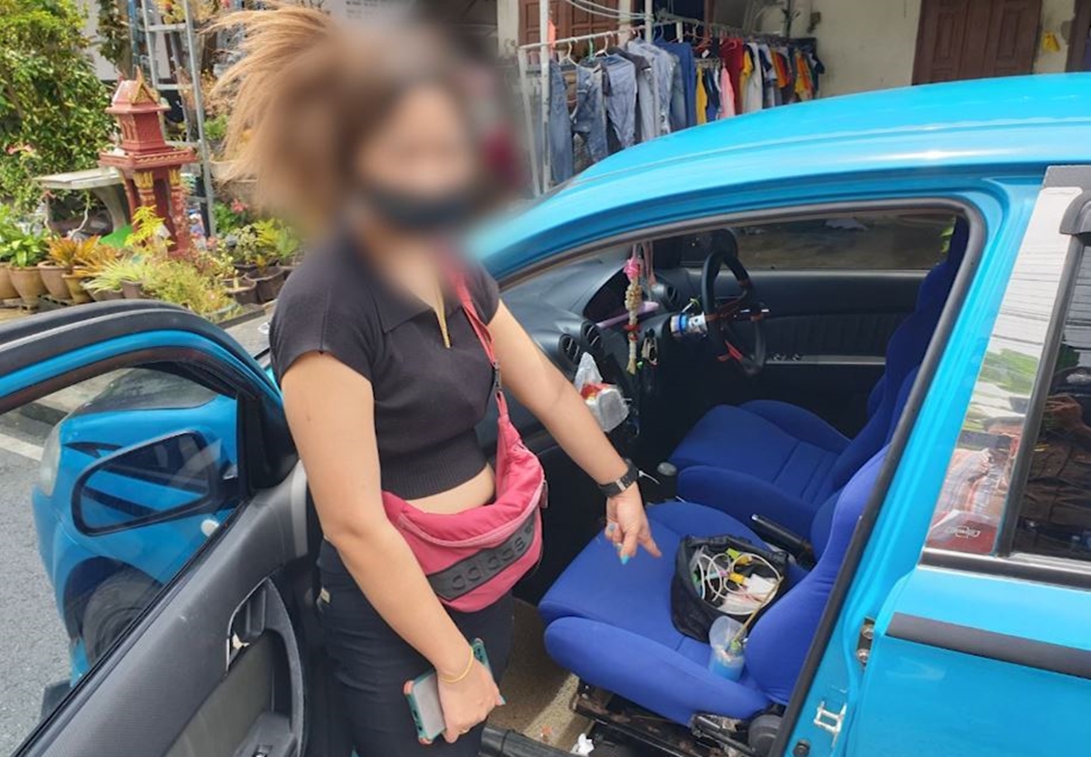 ต่อมาทางตำรวจได้ขอทำการตรวจค้นตัวและรถเก๋ง พบอุปกรณ์การเสพยาไอซ์ 1 ชุด อยู่ในกระเป๋าผ้าสีดำ วางอยู่บนที่นั่งผู้โดยสารด้านหน้า โดย น.ส.ปาริชาติ คนขับ ยอมรับว่าเป็นของตนเอง