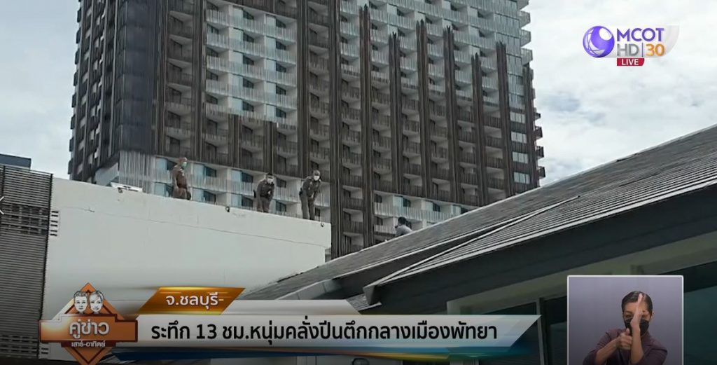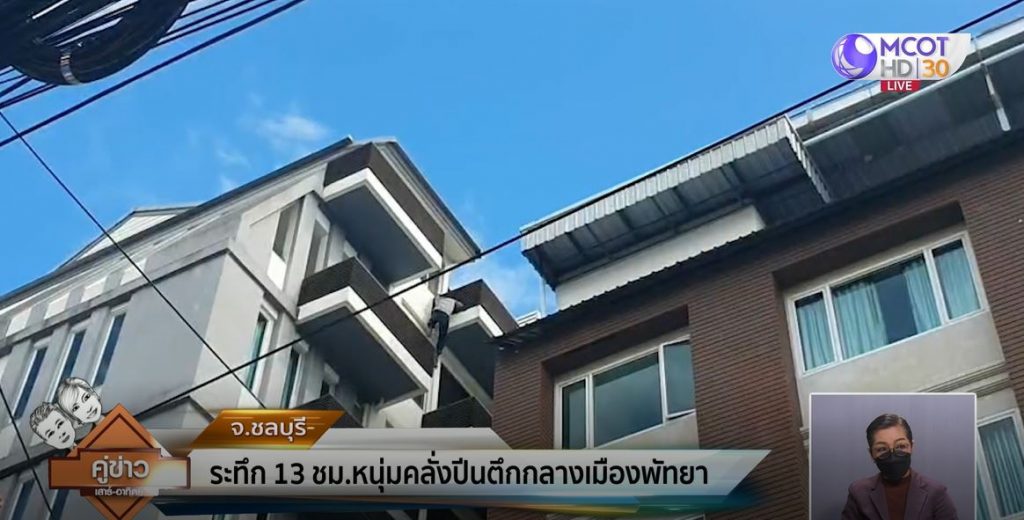 ชลบุรี 11 ก.ค. – ตำรวจเมืองพัทยาใช้เวลากว่า 13 ชั่วโมง นำตัวหนุ่มหนองบัวลำภูวัย 43 ปี ปีนโรงแรมสูงกว่า 8 ชั้น กลางเมืองพัทยา ลงมาได้สำเร็จ ก่อนนำตัวส่งโรงพยาบาล เนื่องจากมีอาการอ่อนเพลียหนัก